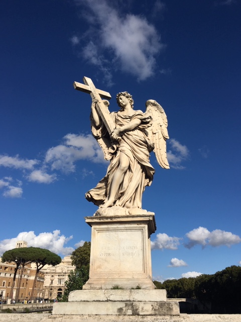 The statues of the angels carrying symbols of the Passion of Christ on the bridge, were carved by Bernini’s assistants and ideally accompanied pilgrims crossing the river here on their way to the Vatican. I like the idea of the art of a city that doesn’t just embellish it, but has an active role, such as accompanying and embracing those who come here.